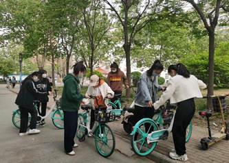 3、公司为进一步提高员工的服务意识,培养同学们的奉献精神,在龙子湖校区开展了义务清扫教学楼及摆放校内共享单车志愿服务活动。在清扫教学楼志愿活动中,同学们明确分工、相互配合。对B区教学楼进行了全面清扫,擦亮了教学黑板、美化了公共区域,积满灰尘的墙角被擦洗得焕然一新。在摆放校内共享单车志愿服务过程中,同学们将校园道路两旁随意停放的共享单车推到指定停放点摆放整齐,同时向过往骑车的同学们积极宣传文明骑行、有序停放的重要意义,引导骑行者将共享单车摆放到相对集中的停放区域,鼓励大家监督校园内身边存在的不文明行为。