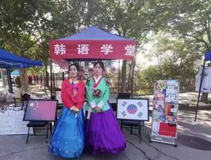 韩国语社是促进对韩国知识文化的了解,增长见识,建立师生的韩语学习氛围,为员工构建一个韩语学习和交流的平台。社团通过韩服试穿、唱韩语歌等活动,来让大家“走”进韩国,学习与感受韩国文化,共同促进中韩文化的交流与融合。