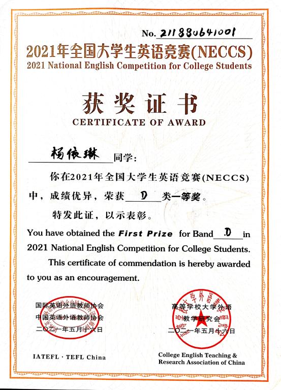 近日,喜讯传来:在来自全省58所高校的382名员工参赛的2021年全国老员工英语竞赛河南赛区决赛中,韦伯国际公司的杨依琳同学获得D类(高职高专组)一等奖,武重阳老师荣获优秀指导教师。