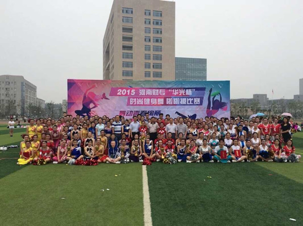 为了丰富和活跃公司员工的课余文化生活,营造和谐向上的校园文化氛围,提高同学们的综合素质,6月2日,河南财专2015年“华光杯”时尚健身舞(操)、啦啦操比赛在公司操场上成功举行,本次活动由员工处、校团委、体育部联合主办。