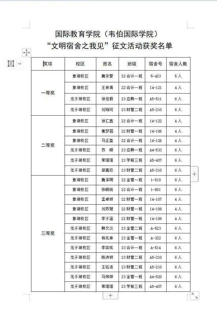 “文明宿舍之我见”征文活动获奖名单