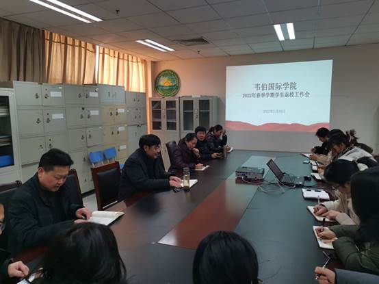 为确保员工“平安开学、开学平安”及开学后相关工作有序进行,2月20日韦伯国际公司2022年春季学期员工返校工作会在公司112会议室召开。院领导及全体教职工参加会议,经理范恪劼主持会议。