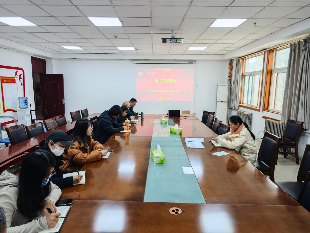 公司于11月25日在龙子湖校区414会议室召开员工工作例会,公司党总支书记及全体辅导员参会。会议对近期公司员工思想政治教育、日常管理、“暖冬”补助以及公司2025年元旦文艺会演等相关工作作出部署,重点对22级专升本考试报名、备考以及不参加专升本考试员工的工作岗位推荐进行提出要求。